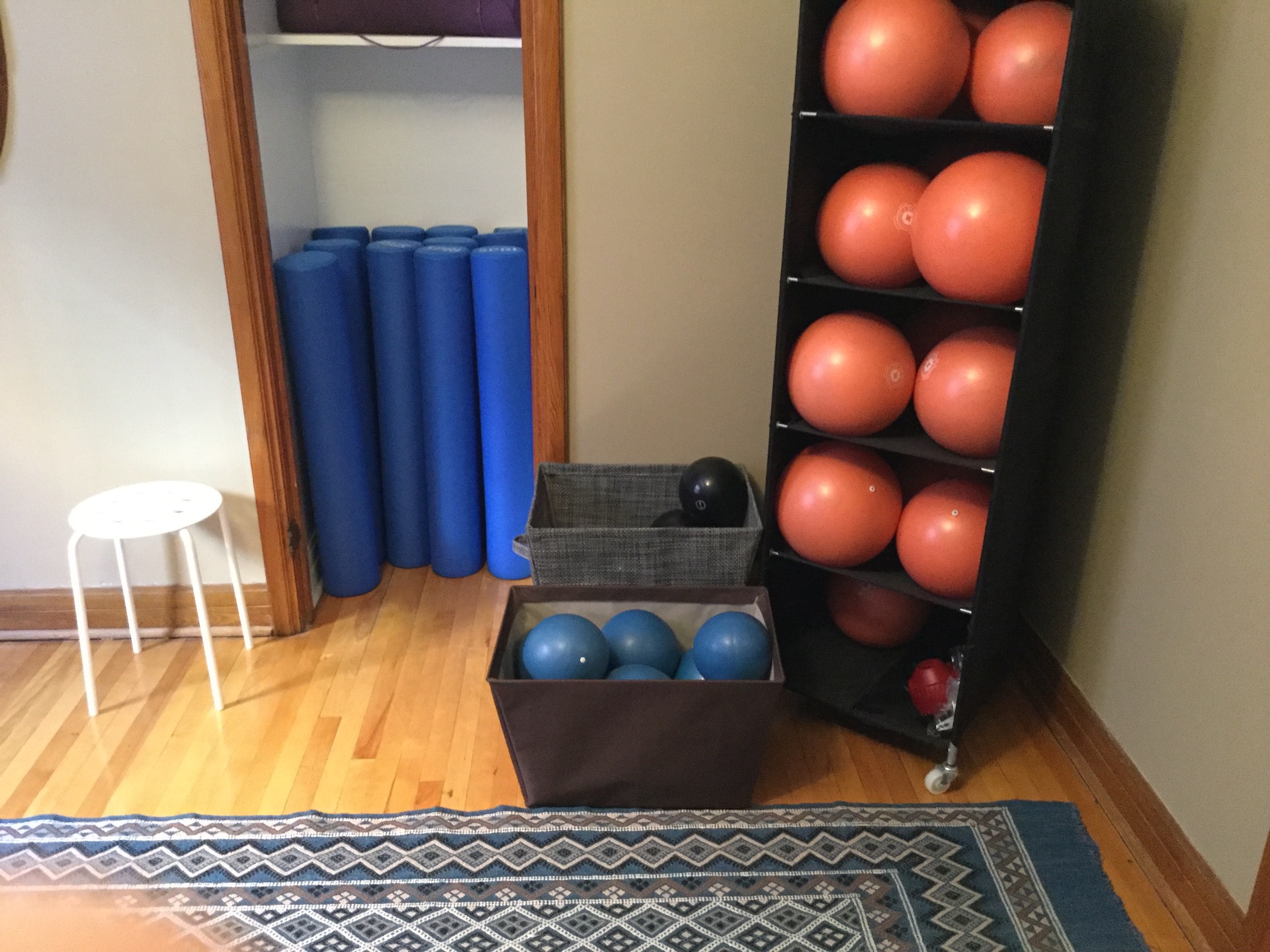 De plus, Mona a intégré à son studio l'approche de massage sur balle (du style Yamuna ball) communément appelé "Rolling Ball", et aussi du massage sur rouleau.